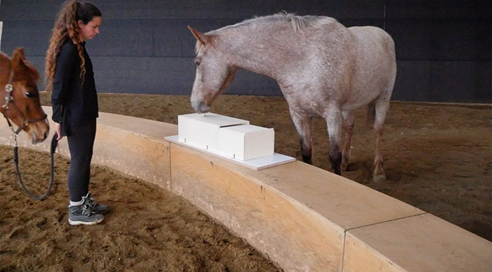 Première version prototype boîte, résidence de recherche au Manège Cascabel, centre de recherche pour la création en art équestre, Pôle National Cirque Jules Verne, Amiens, 2017.